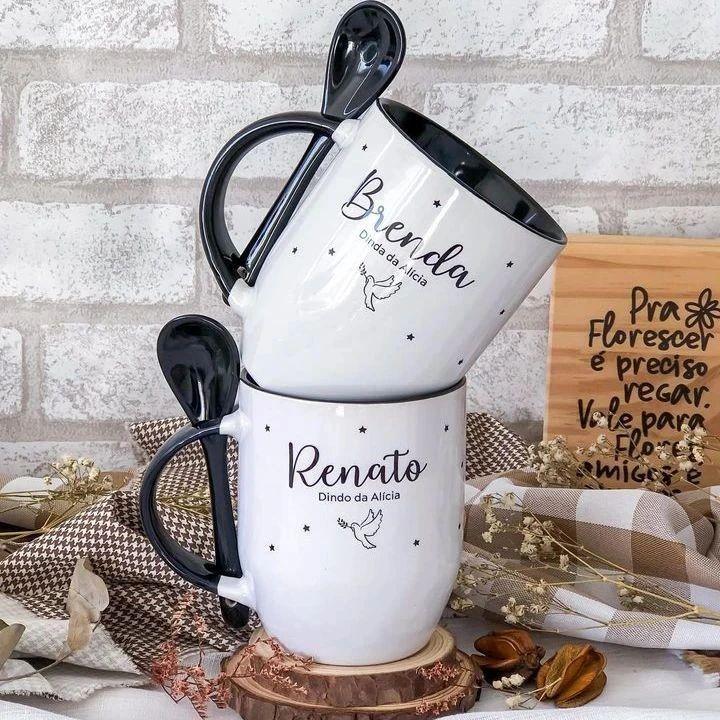 Caneca Cônica com Colher: ☕ Ideal para quem valoriza um design diferenciado na hora de presentear ou usar.