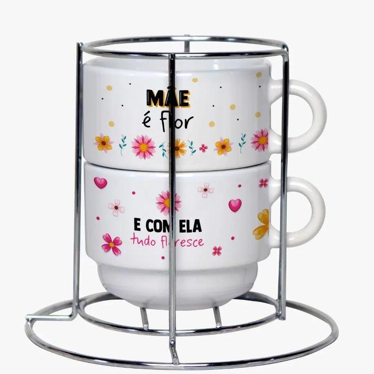 Kit Duo: 2 Xícaras + Suporte de Metal. ☕️ Um conjunto essencial para quem busca qualidade e organização com um toque personalizado.
