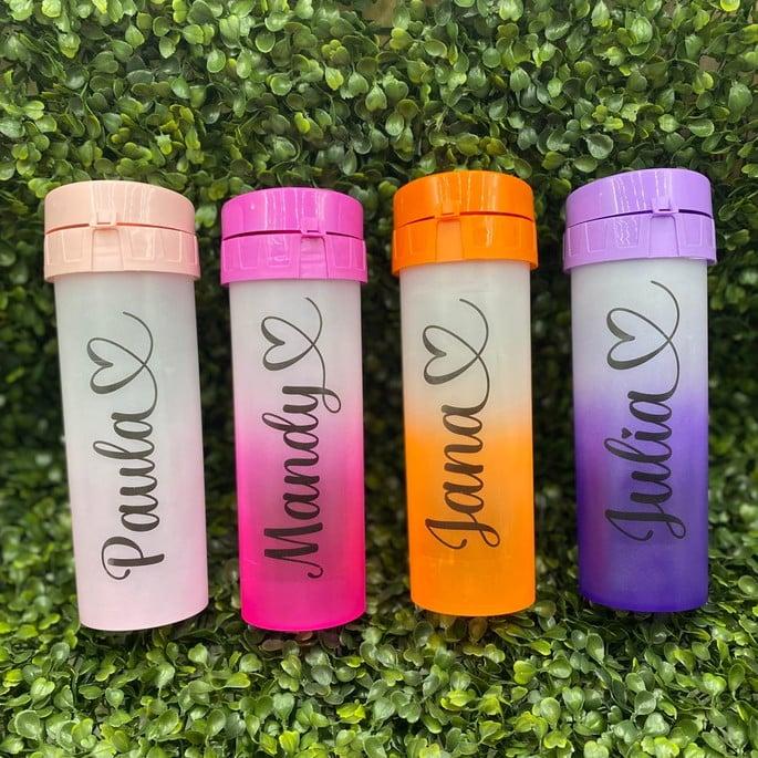 Garrafa Acrílico Degradê: 💧🎨 Uma excelente opção para brindes de eventos, lembranças escolares ou uso pessoal.
