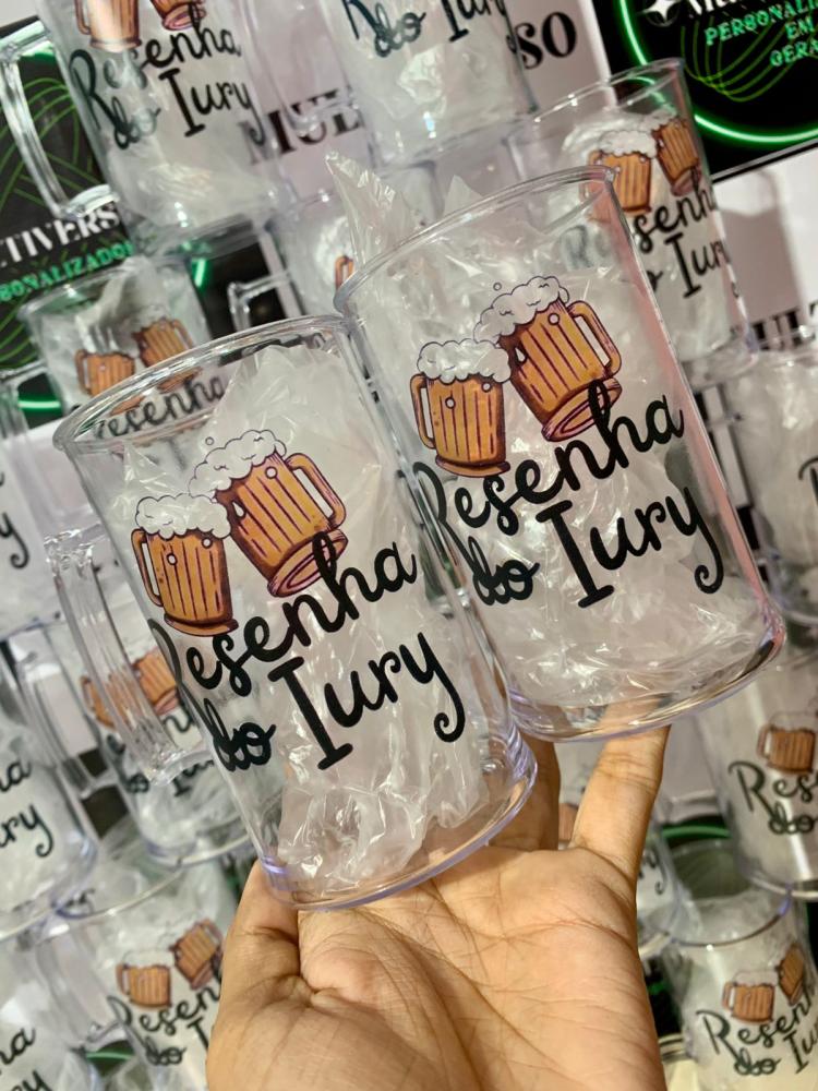 Caneca de Chopp 300ml: Por ser transparente, ela se adapta a qualquer identidade visual, oferecendo uma peça durável que o cliente levará para casa e usará em seus momentos de lazer, mantendo sua marca sempre presente.